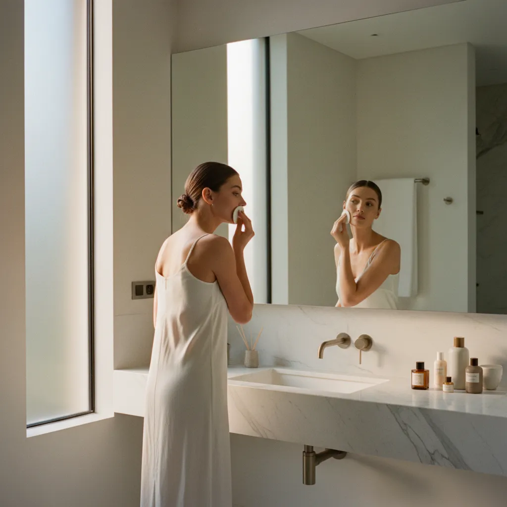 Voici la routine que je recommande à mes clientes et que je pratique moi-même chaque soir. Elle prend environ 5 minutes et fait toute la différence sur la qualité de la peau à long terme.
